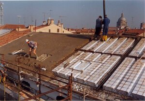 Die Dachelemte können bis zu einem Winkel von 20° betoniert werden. Bei größeren Winklen empfiehlt sich das Aufbringen von Dachlatten, auf denen die Ziegel befestigt werden können.